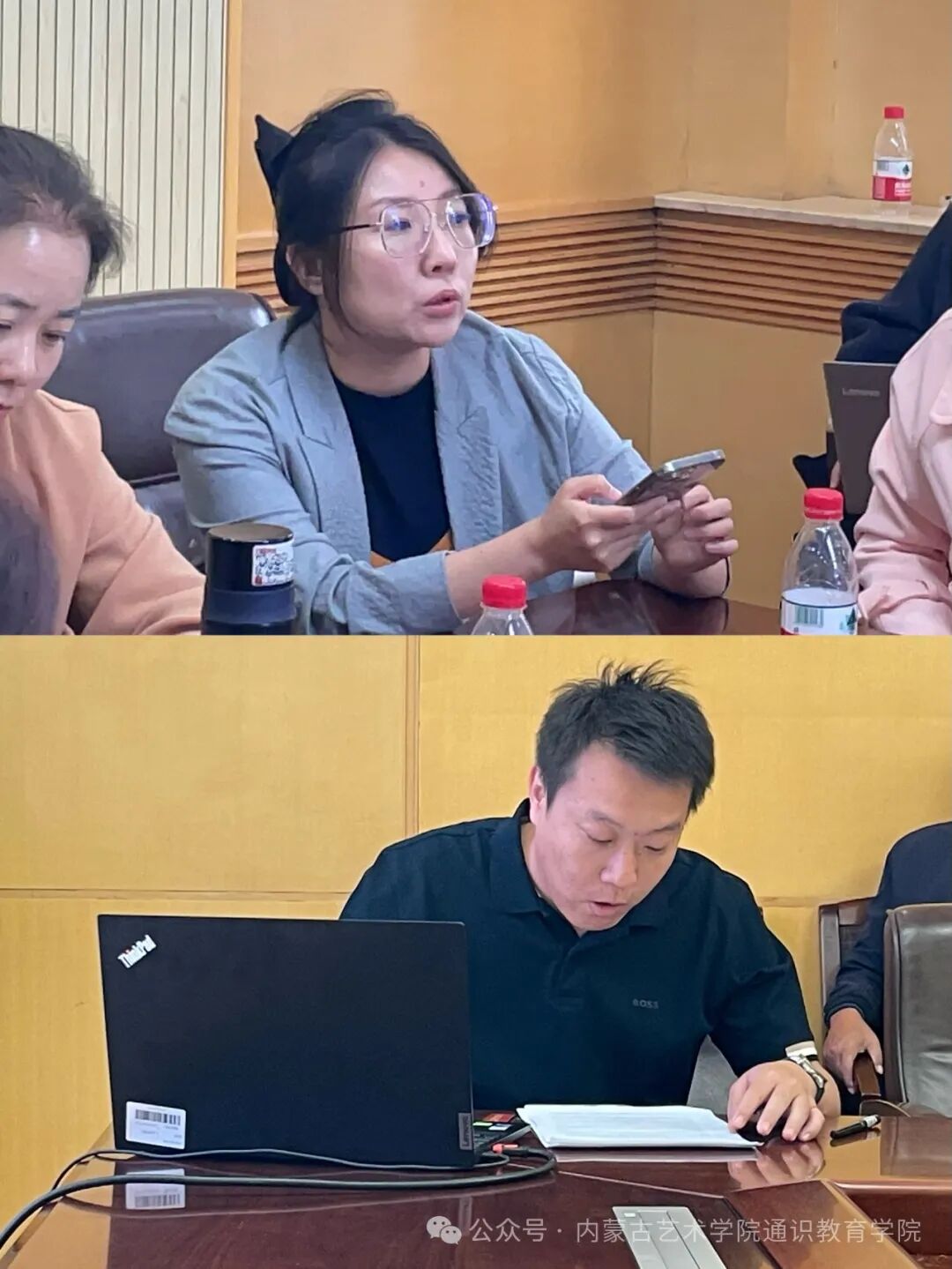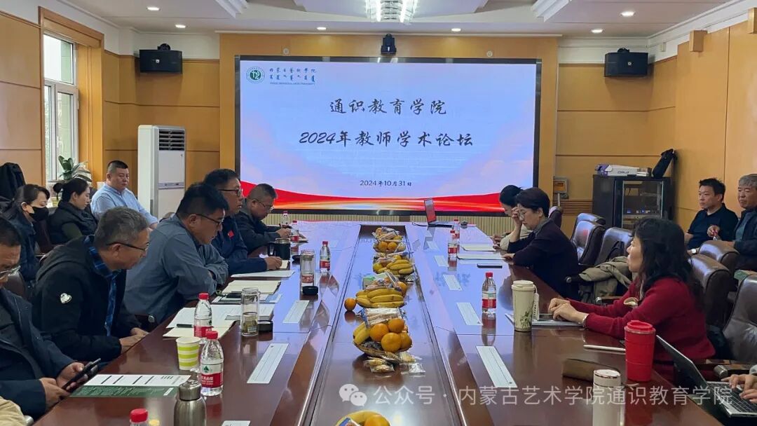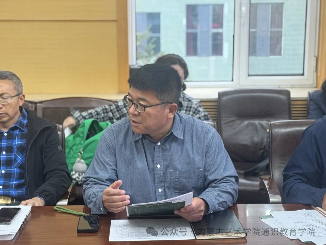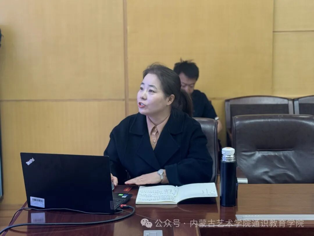 在圆桌会议中,大学外语教研室主任张一弛以“大学英语课程思政四位一体模式构建及评价”为题,大学语文教研室主任那布其以“我校语文教学现状及发展趋势”为题,大学体育教研室主任任海波以“我校体育工作的现状及发展方向”为题,艺术理论与美育教研室主任张媚以“《内蒙古自治区学校美育浸润行动实施方案》背景下的教研室活动规划”为题,综合教研室主任张桂英以“思政之光:点亮信息素养课堂的灵魂”为题,副院长周海林以“通识教育理论研究学科支撑背景探索”为题,院长李欢喜以“艺术院校通识教育发展路径”为题,分别围绕各教研室学科及通识学院整体发展作了交流,分享了教学经验和改革思路,提供了丰富的学术资源和实践案例。与会教师就通识教育的创新路径、课程改革、师资队伍建设等议题展开深入讨论和交流。